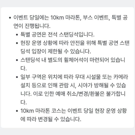- 특별 프로그램: 마라톤 종료 후 특별 공연과 팬 참여형 이벤트